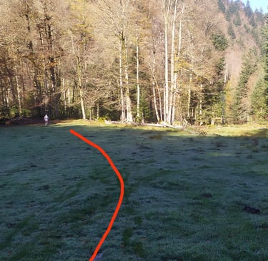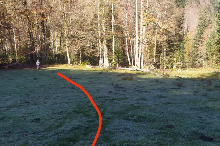 Quand vous rencontrez la piste des sapins, vous la prenez à droite.