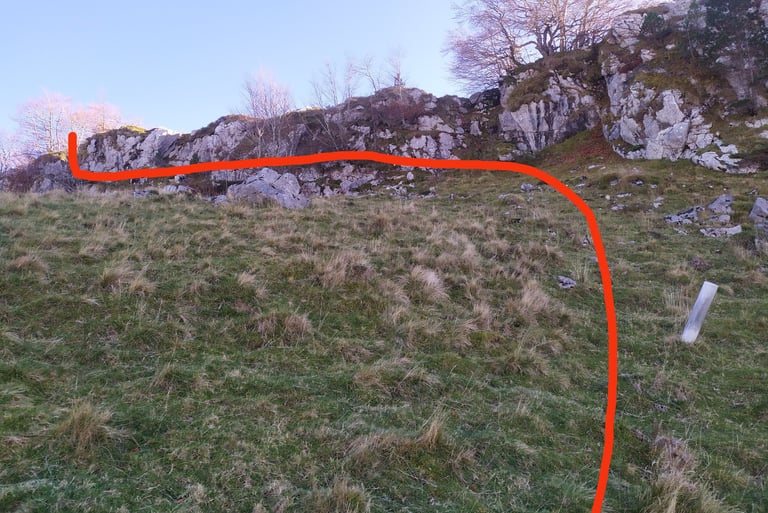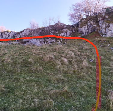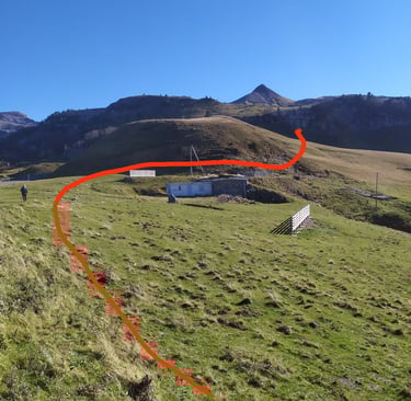 A partir du col nous allons descendre le chemin de la bergerie et remonter la prairie en suivant les balises jusqu'à la falaise.