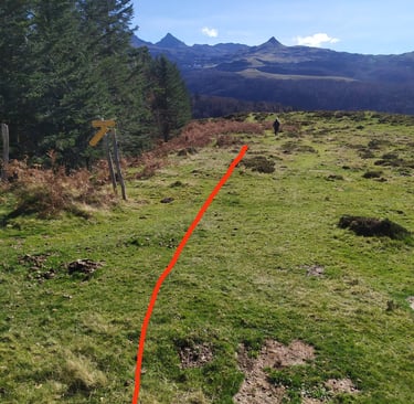 Nous remontons la prairie en suivant les balises en direction de l'ancien poste des douanes.