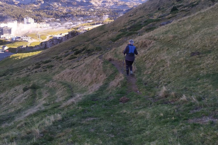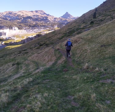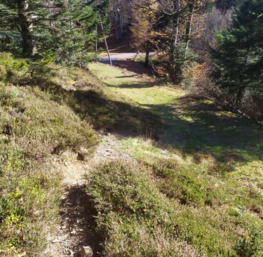 Après avoir traversé la route et remonté de quelques mètres la prairie nous rejoignons une petite sente qui, à flanc de coteau va nous conduire au refuge Jeandel et à la station.
