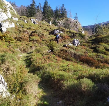 Au niveau du col de Suscousse nous allons nous engager, direction sud ouest dans un magnifique et ancestral sentier de transhumance qui nous conduira avec 300 m de D+ jusqu'au Soudet.
