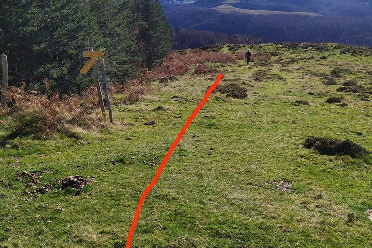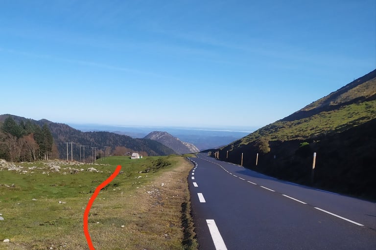 Pour le retour nous allons quitter la route à gauche au col de Hournères et évoluer sur les crêtes d'Issarbe jusqu'au point B.